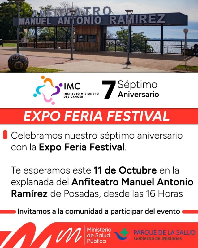 Este sábado, 11 de octubre, en el marco del séptimo aniversario del Instituto Misionero del Cáncer se realizará la Expo Feria Festival, en la explanada del Anfiteatro Manuel Antonio Ramírez de Posadas, desde las 16 horas.
