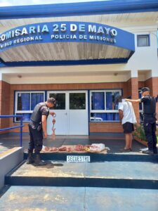 _Ayer por la tarde, la Policía de Misiones detuvo a dos hombres de entre 32 y 53 años, y secuestró más de 50 kilos de carne faenada. La investigación comenzó a raíz de la denuncia de un robo, por parte del propietario de un campo en el barrio Sarmiento de 25 de Mayo._