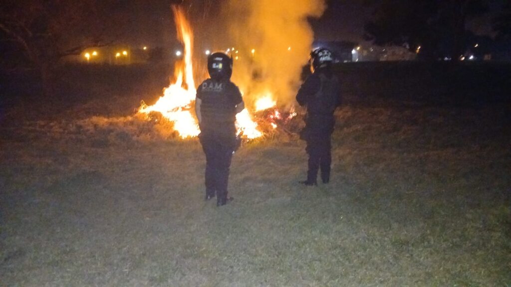 Esta madrugada, personal policial de la División Motorizada de Fátima detuvieron a dos hombres de 19 y 21 años, quienes fueron sorprendidos cuando realizaban una quema de malezas en un descampado del barrio Don Darío de Garupá.