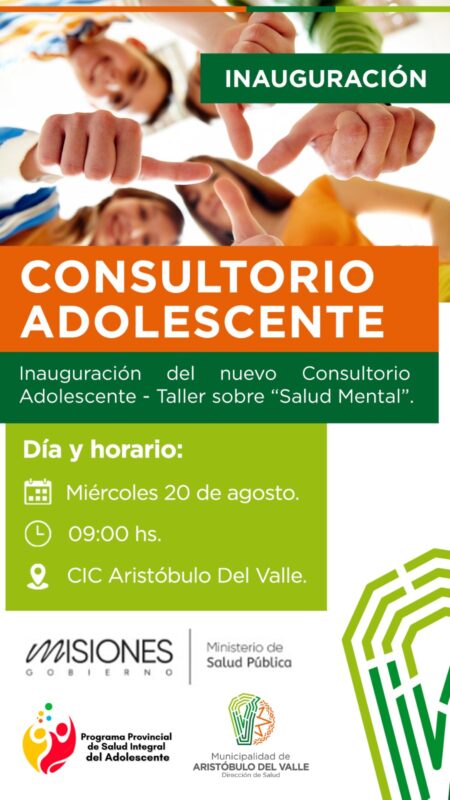 El miércoles, a partir de las 9 horas en el CIC de Aristóbulo del Valle, se va a llevar a cabo la inauguración de un nuevo consultorio para la atención integral de las y los adolescentes.