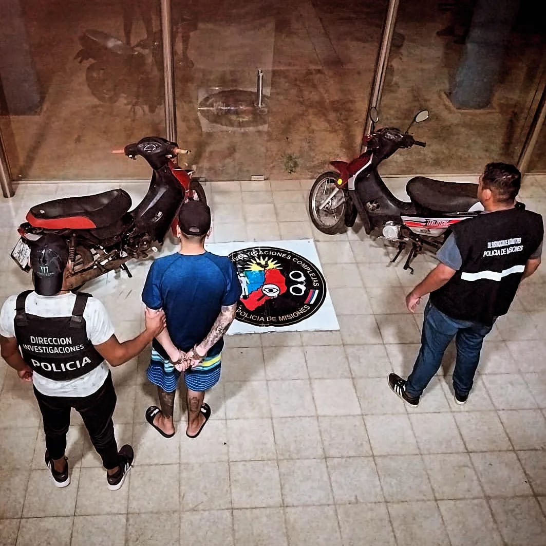 Mediante tareas investigativas y rastrillajes en la zona costera de Garupá, anoche atraparon a Enzo P., alias Mojarra, de 21 años, quien posee un frondoso prontuario delictivo. Le secuestraron dos motos las cuales estaban ocultas en cercanías de donde fue apresado. Además, en Posadas y San Ignacio recuperaron otras dos motos robadas en las últimas horas.