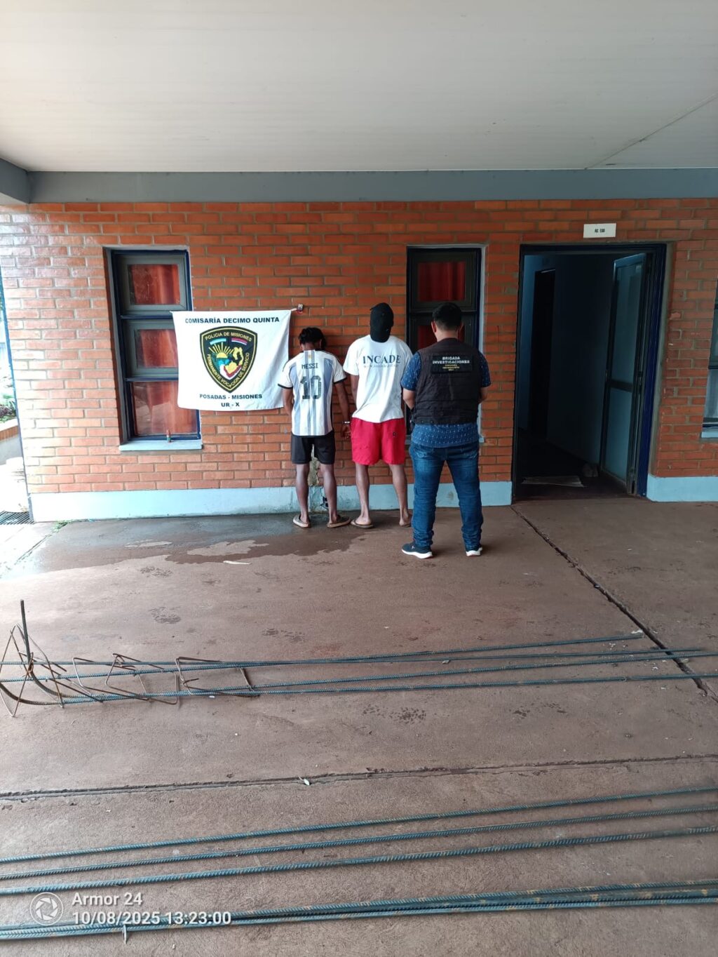 Dos delincuentes de 21 y 25 años fueron detenidos este miércoles en Posadas, en el marco de una investigación por el robo de materiales de construcción. Durante los procedimientos realizados por efectivos de la Comisaría 15ª y la Mini Brigada de Investigaciones de la Unidad Regional X, se recuperaron varias barras y estribos de hierro que habían sido sustraídos y vendidos en distintos barrios.
