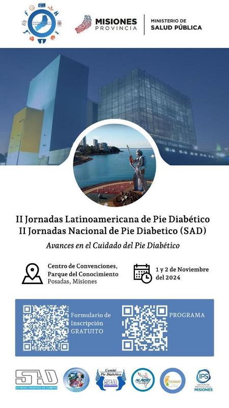 El 1 y 2 de noviembre, Posadas será sede de las II Jornadas Nacionales y Latinoamericanas de Pie Diabético, “Avances en el Cuidado del Pie Diabético”, en el Centro de Convenciones del Parque del Conocimiento. Es un evento gratuito dirigido a todo el equipo de salud de la provincia y la región.