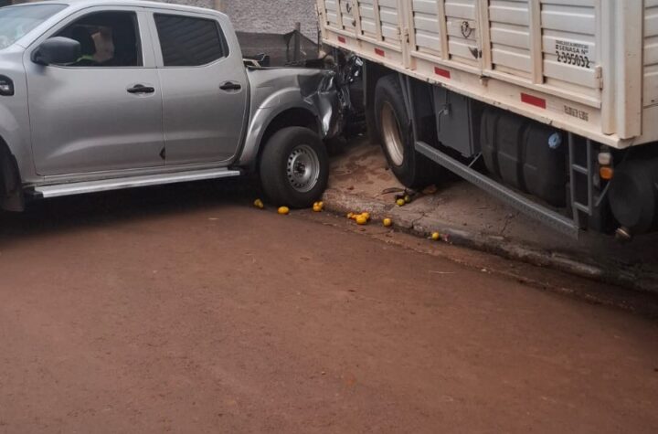 Colisión entre camión y camioneta dejó daños materiales en Jardín América