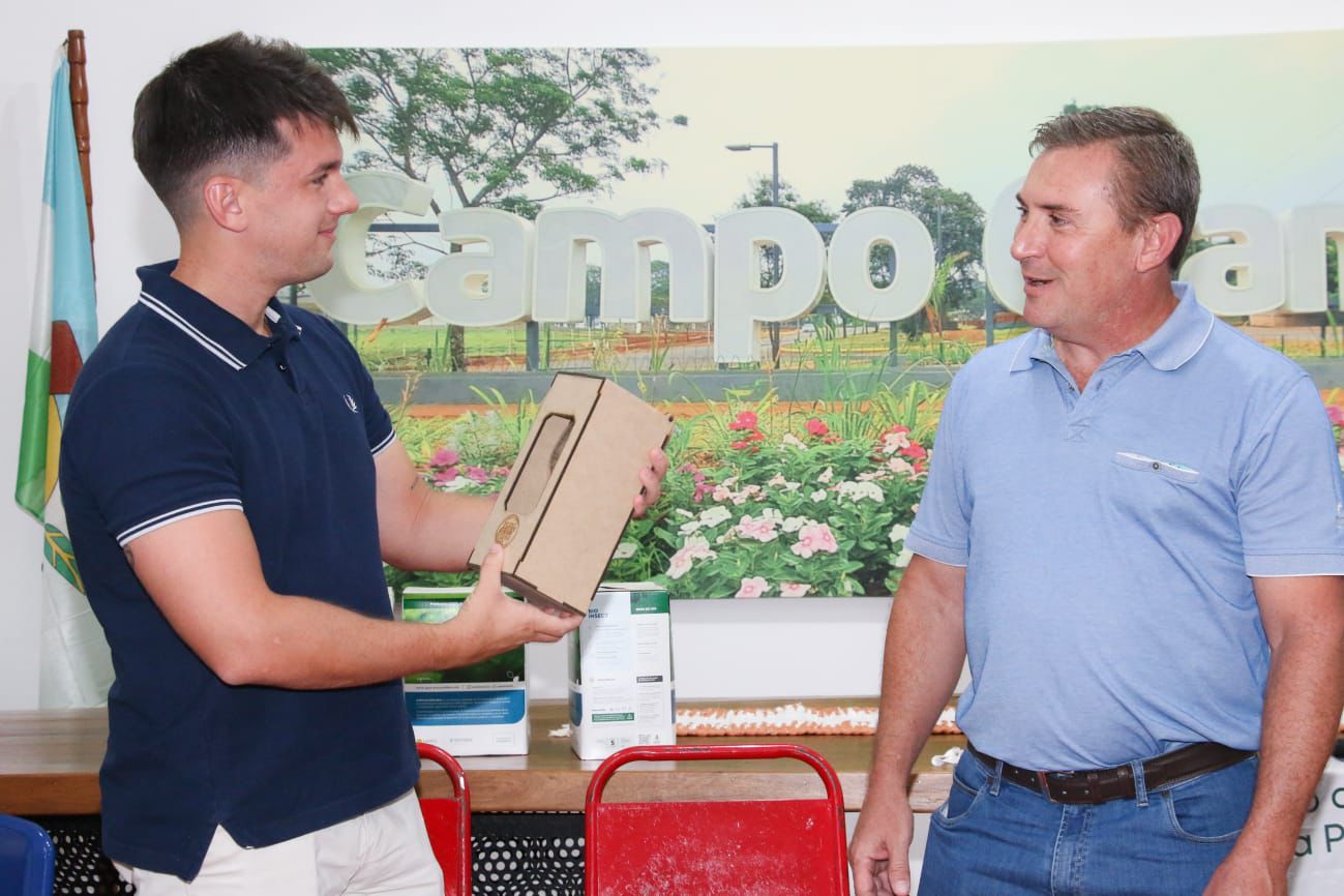 El encuentro tuvo lugar en la Municipalidad de Campo Brande, a donde también concurrieron productores agrarios de la zona, a quienes se les hizo entrega de los insumos orgánicos certificados Bioinsect y Biofert GTG, ambos elaborados por la empresa Agro Sustentable de la provincia de Misiones.