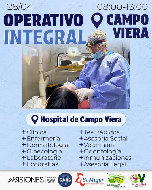 Mañana, de 8 a 13 horas, se llevará adelante un nuevo operativo integral de salud en el Hospital de Campo Viera, con el objetivo de acercar los servicios esenciales de salud como también el acompañamiento social a la comunidad.