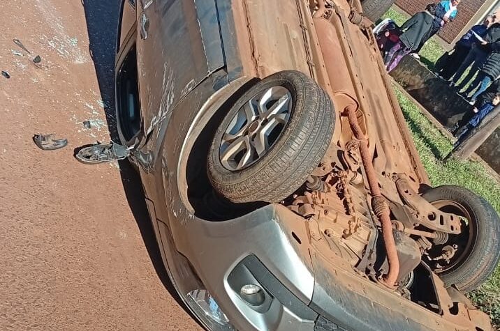 Por agarrar el mate, perdió el control y volcó su auto en Posadas