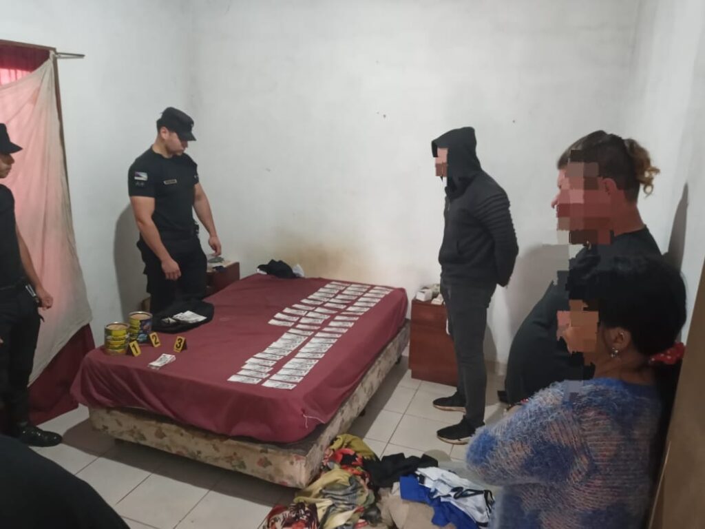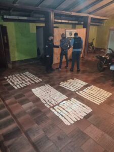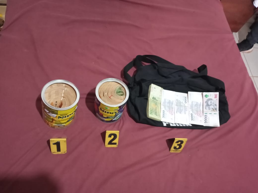 Continuando con la investigación, esta tarde, la policía concretó dos allanamientos en la calle 12 de Octubre en Puerto Rico, donde fueron detenidos Kevin A. (33 años) y Belén A. (21 años), quienes serían cómplices e integrantes de la misma banda delictiva. Durante estos operativos, se incautaron más de 2.700.000 pesos escondidos en latas de leche y cinco teléfonos celulares que serán analizados.