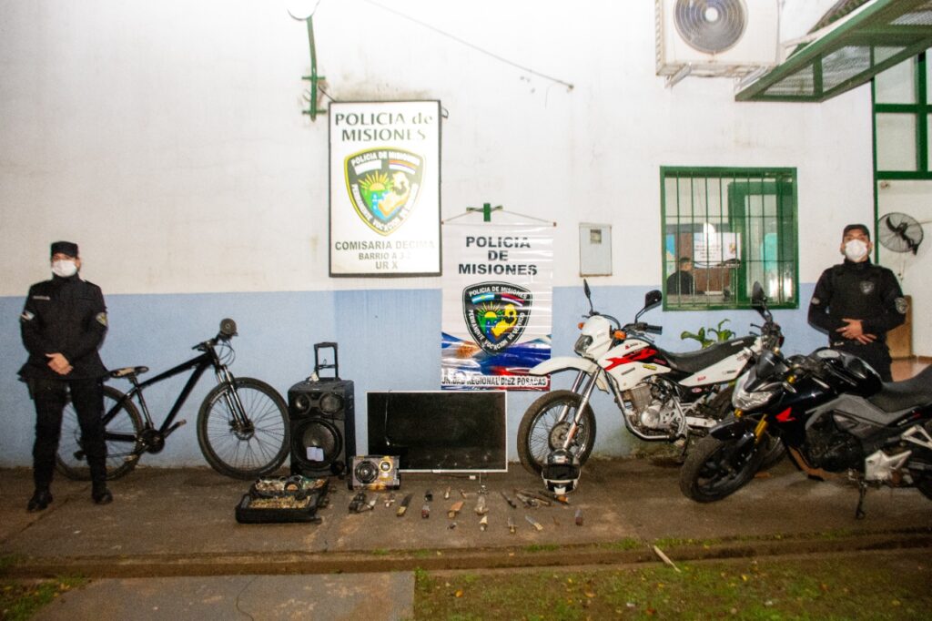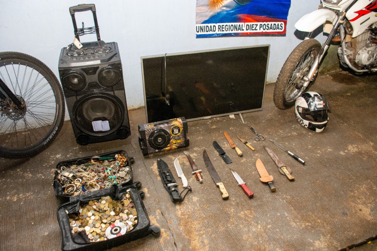 En el sitio secuestraron herramientas varias, un maletín con gran cantidad de bijouterie, dos relojes, cuchillos de distintas clases, un televisor smart 43 pulgadas, un equipo de música tipo parlante, una bicicleta, una réplica de arma de fuego, 25 proyectiles calibre 22 y dos motocicletas de distintas cilindradas, todos estos objetos relacionados con las causas.