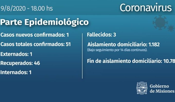 El Ministerio de Salud de Misiones informo en el ultimo parte epimediologico de un nuevo caso positivo de covid-19 una...