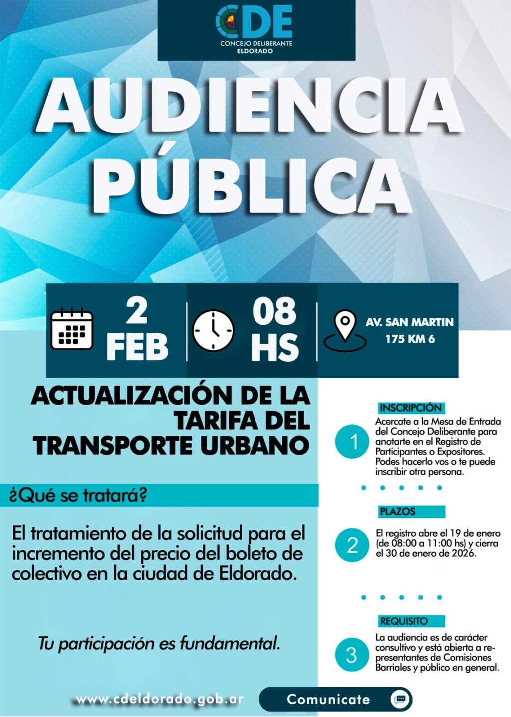 Desde el Concejo Deliberante se informó que la audiencia pública será de carácter consultivo, abierta a representantes de comisiones barriales y al público en general, y que la participación ciudadana será clave para expresar opiniones, inquietudes y propuestas en torno al servicio y su costo.