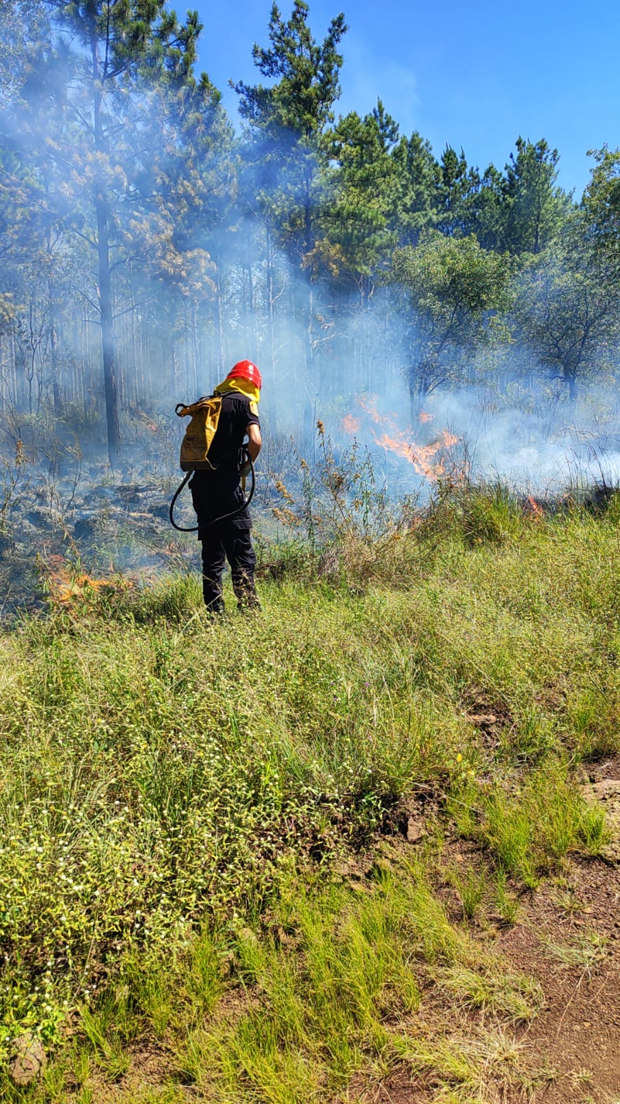 Un incendio de malezas y pinar fue controlado hoy en la localidad de Santa Ana, cerca de la aldea Poty, gracias a la rápida intervención del personal de la División Bomberos, evitando que el fuego se propagara hacia viviendas y áreas sensibles.