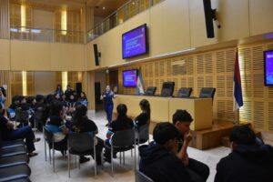 La diputada provincial Mabel Cáceres fue la encargada de darles la bienvenida. Los estudiantes pudieron aprender sobre la historia del lugar, ¡interactuar con el asistente virtual “Legis” y disfrutar de una actividad recreativa a través de la plataforma Kahoot!, lo que añadió un toque lúdico a la experiencia.