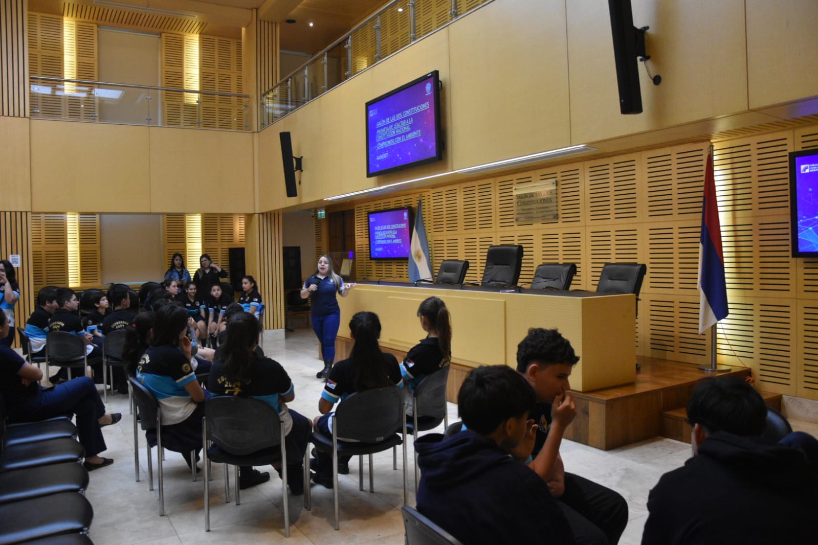 A pesar de las inclemencias del tiempo en la ciudad de Posadas, alumnos y docentes del Instituto San Ignacio de Loyola, del barrio San Jorge, y del Instituto Marta Teodora Schwarz participaron de una enriquecedora visita a la Cámara de Representantes de Misiones. Durante la jornada, los estudiantes recorrieron espacios clave como el Recinto de Sesiones, el Embajador Legislativo y el Salón de las Dos Constituciones, sumergiéndose en la historia y el funcionamiento del poder legislativo.