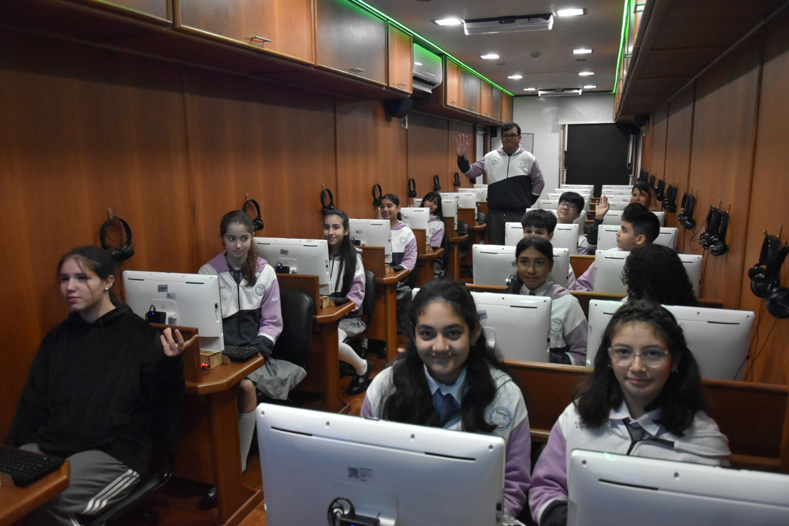 Durante el recorrido, los estudiantes conocieron el Recinto de Sesiones y el Embajador Legislativo Misionero, donde aprendieron sobre la historia del edificio, la función de los legisladores y la dinámica parlamentaria. También interactuaron con el asistente virtual “Legis”, al que pudieron programar desde las computadoras, lo que les permitió vivenciar la tecnología aplicada al ámbito legislativo.