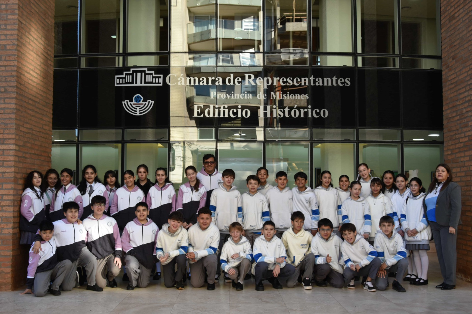 Alumnos del Instituto Nuestra Señora de Fátima, de Garupá, realizaron una visita guiada a la Cámara de Representantes de Misiones, donde fueron recibidos con calidez por las diputadas provinciales Suzel Vaider y Nancy Unfurer.