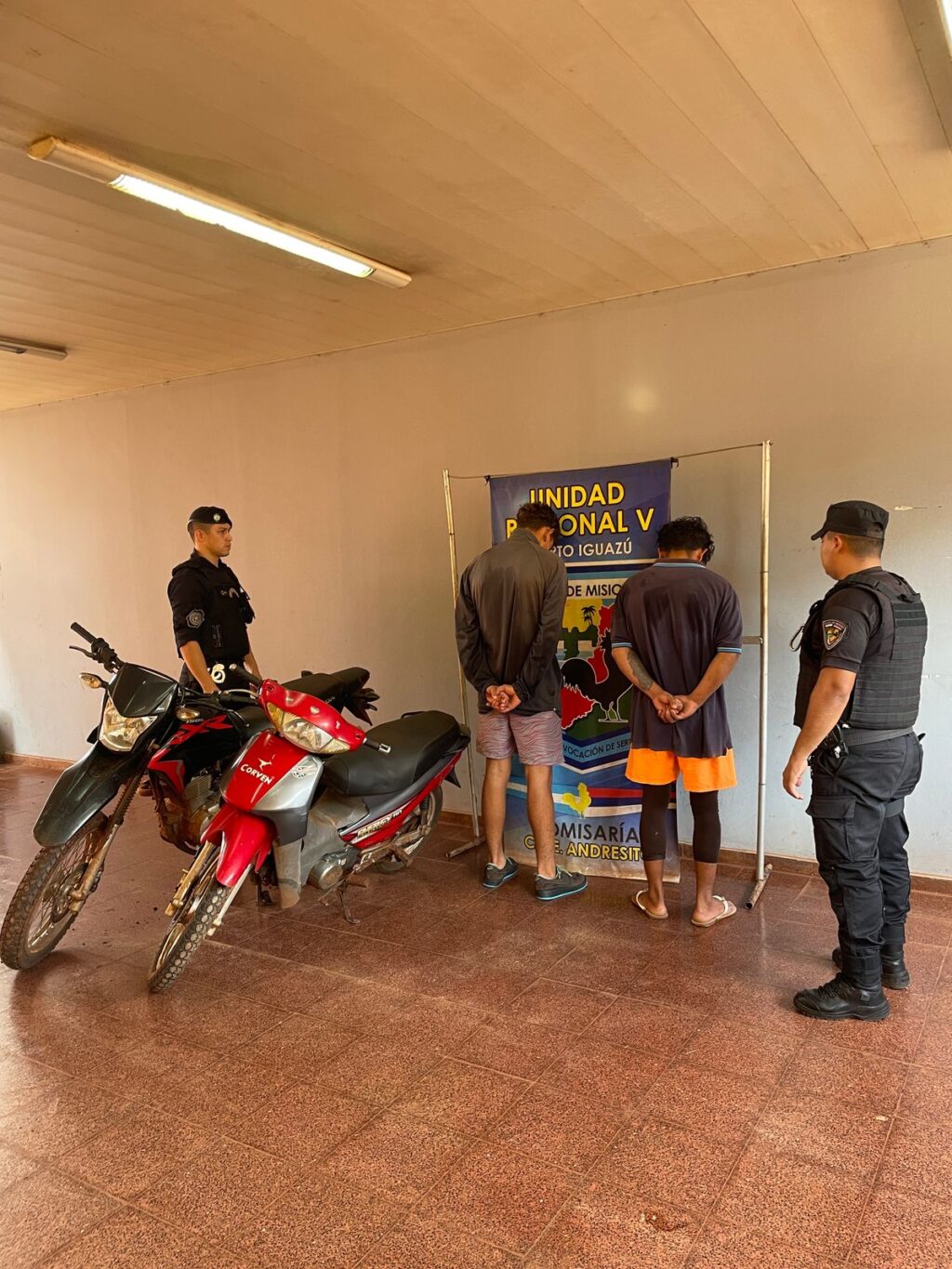 Un vecino de Cabure-í, Puerto Iguazú, denunció el robo de sus dos motocicletas, y gracias a tareas investigativas, la Policía de la Unidad Regional V recuperó ambos rodados en distintos operativos realizados en la localidad, deteniendo a un hombre de 28 años y a un joven de 18, quienes quedaron a disposición de la Justicia. En otros despliegues, se recuperaron otros tres vehículos robados en distintas jurisdicciones de la provincia.