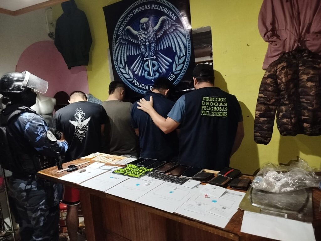 En un operativo realizado esta madrugada, la Policía de Misiones desmanteló un narcokiosco que operaba en el barrio Hipólito Irigoyen de Posadas, bajo la fachada de un local de venta de ropas y calzados. Cuatro hombres fueron detenidos y se secuestraron dosis de cocaína, marihuana, dinero en efectivo y elementos utilizados para el corte y fraccionamiento de estupefacientes.