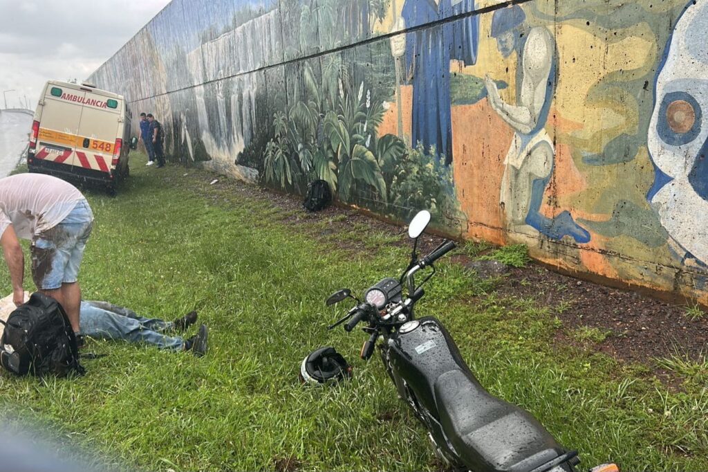 Hoy alrededor de las 16 horas, una motocicleta Honda modelo CB1 despistó en la intersección de las avenidas Acceso Sur y Costanera. El rodado, era conducido por un hombre de 19 años acompañado de una mujer de 18.