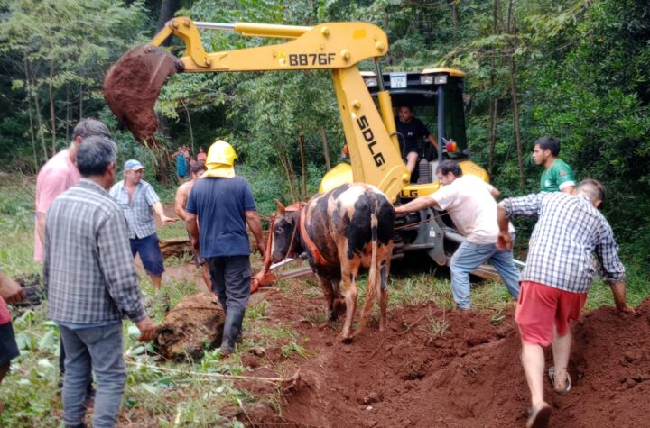 Bomberos de la Policía rescataron a un vacuno que había caído en un pozo en Santa Ana