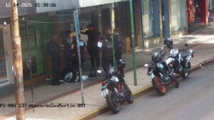 A partir de ello, los operadores de videovigilancia realizaron un retroceso y análisis detallado de las cámaras instaladas en el sector del microcentro, logrando establecer con precisión el lugar donde se habría cometido el ilícito. De este relevamiento se determinó que el robo ocurrió en un local comercial ubicado sobre calle San Lorenzo, entre La Rioja y Córdoba, tras violentar una puerta de vidrio.