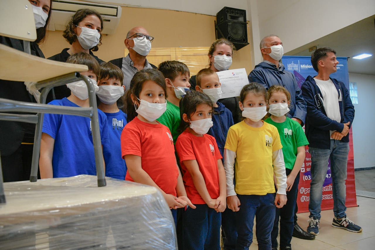 Las instituciones educativas presentes que recibieron mobiliario para distintos niveles fueron: Don Bosco, San Francisco, Santa Catalina y Universo, de la ciudad de Posadas, además del interior provincial, el Centro Comunitario Rural Evangélico de Comandante Andresito, Instituto Pabla Mendoza de Fracrán, Inst. Concordia de San Vicente, el CEO de Iguazú, IAES de Puerto Rico y el Inst. Emanuel de Oberá.