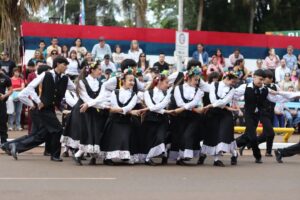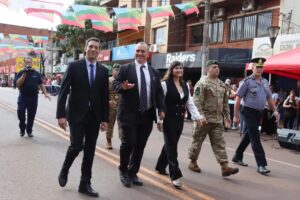 La ceremonia incluyó la exhibición de la Policía de Misiones y del Servicio Penitenciario Provincial, así como el tradicional desfile cívico–militar, en el que participaron instituciones educativas, fuerzas de seguridad, agrupaciones culturales, organizaciones sociales y vecinos en general, todos unidos para rendir homenaje a la historia y a la identidad de Eldorado.