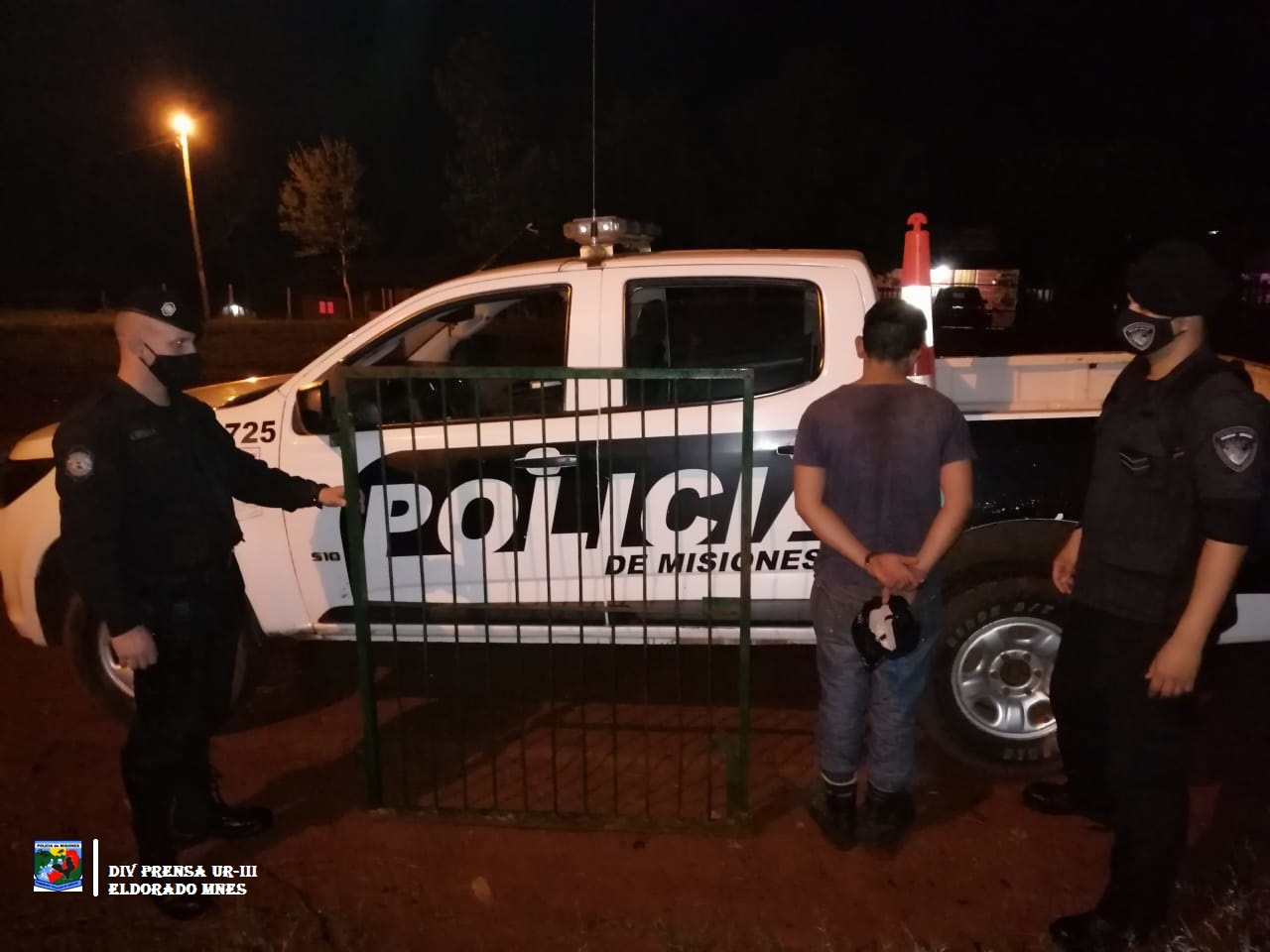Esta madrugada cerca de las 03:15 horas, en el barrio Antiguo Centro del Km. 2 de esta ciudad, efectivos de la Div. Cdo. Oeste UR-III, realizaban sus habituales recorridas con móviles y a pie, momento que percibieron que dos personas de sexo masculino trasladaban un portón de metal grande, que fue sustraído del domicilio del ciudadano Raul B. de 47 años.