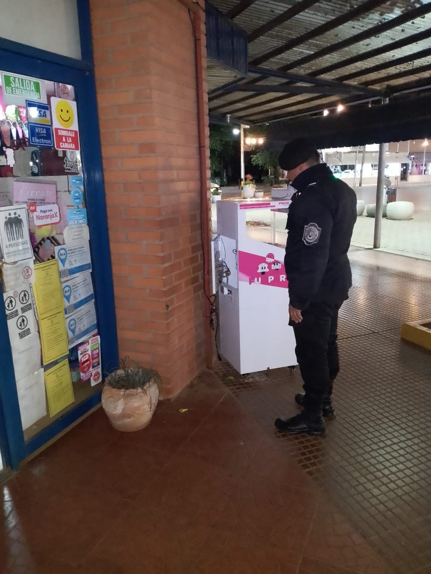 El procedimiento se realizó hoy cerca de las 13 horas, en inmediaciones de un local comercial ubicado en la Plaza Sarmiento a la altura del kilómetro 9 de la localidad antes mencionada. Donde los agentes fueron alertados de que en el lugar se encontraría un hombre ocasionando daños en las maquinarias.