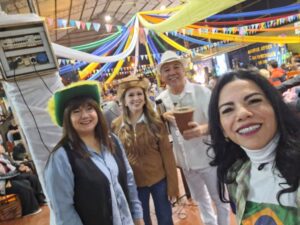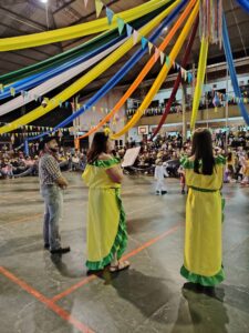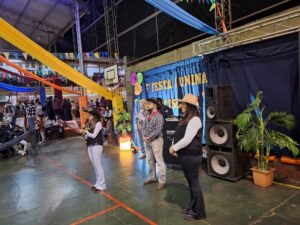 La “Festa Junina” es considerada la segunda celebración más importante en Brasil después del Carnaval. Durante el mes de junio, los brasileños se visten con trajes típicos, bailan y disfrutan de juegos y actividades tradicionales. En este sentido expresaron: “Es como un juego, diversión, alegría. Y está bueno que lo podamos compartir con la comunidad de Eldorado. Eso es lo que está bueno: que conozcan otra cultura”.