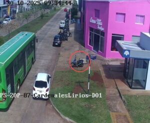 El episodio se registró cuando los operadores de la División Video Vigilancia Itaembé Guazú detectaron, mediante el sistema inteligente de lectura automática de patentes, una Motomel Blitz 110 cc estacionada frente al cajero automático ubicado en las avenidas Lirios y Cardenales, sin ocupantes.