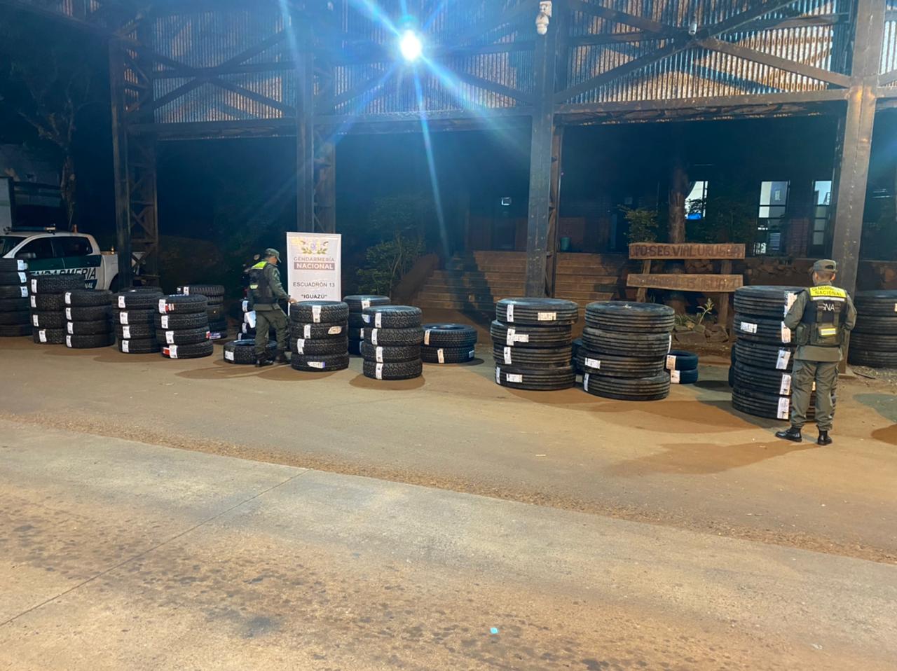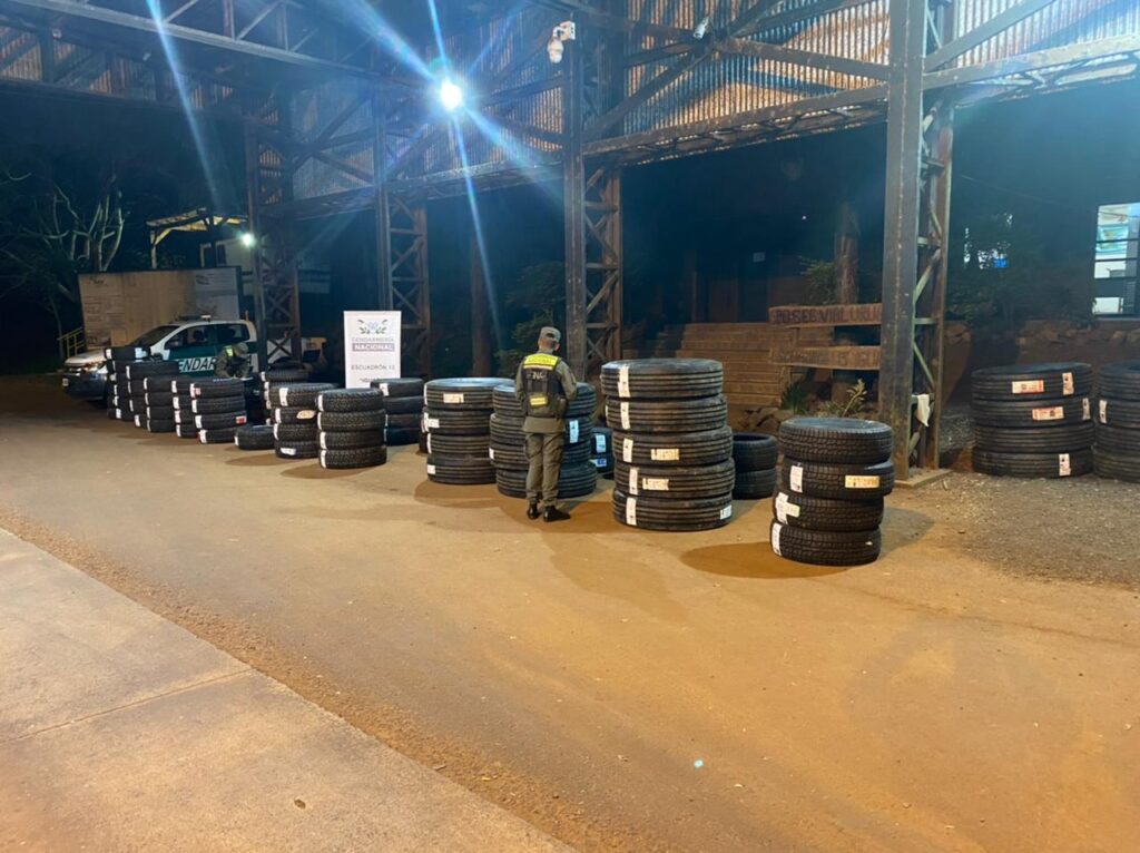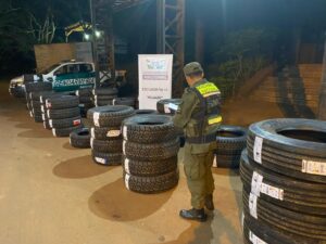EN LAS ULTIMASAS HORAS DEL DIA 03 DE AGOSTO, EL PERSONAL DEL GRUPO VIAL URUGUAI, DEPENDIENTE DEL ESCUADRON 13 “IGUAZU”, EFECTUO UN PROCEDIMIENTO EN INFRACCION A LA LEY 22.415. JUNTAMENTE CON INTEGRANTES DE LA SECCION NUCLEO MIENTRAS EFECTUABAN ACTIVIDADES OPERATIVAS APOSTADOS EN RUTA NACIONAL 12, KM 1.606,5 PARAJE “URUGUA-I”, PROCEDEN AL CONTROL FÍSICO Y DOCUMENTOLOGICO DE UN VEHÍCULO MARCA MERCEDES BENZ, MODELO BMO VERSION ATROM CON SEMIREMOLQUE MARCA ASTIVIA, MODELO AS2, EL MISMO ERA CONDUCIDO POR UN CIUDADANO DE NACIONALIDAD ARGENTINA. EN ESE MOMENTO SE PROCEDE A REALIZAR UNA INSPECCION VISUAL DEL INTERIOR DEL SEMIRREMOLQUE, CONSTATANDOSE UNA GRAN CANTIDAD DE NEUMATICOS DE DISTINTAS MARCAS, MODELOS Y RODADOS, TODOS DE ORIGEN EXTRANJERO; CONTABILIZANDOSE UN TOTAL DE CIENTO CUATRO (104) NEUMATICOS. ESTOS NO CONTABAN CON DOCUMENTACION QUE AVALE SU LEGAL INGRESO AL PAIS.