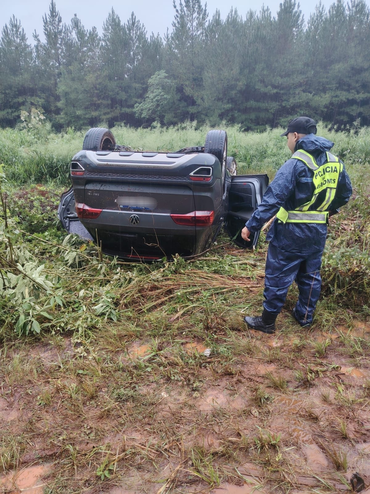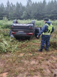El hallazgo se produjo alrededor de las 13:30 horas del 12 de abril, tras un requerimiento que alertó sobre la presencia de un automóvil en la banquina. Al arribar al lugar, los efectivos constataron que se trataba de un Volkswagen Taos, el cual se encontraba en posición invertida, sin llaves y sin ocupantes.