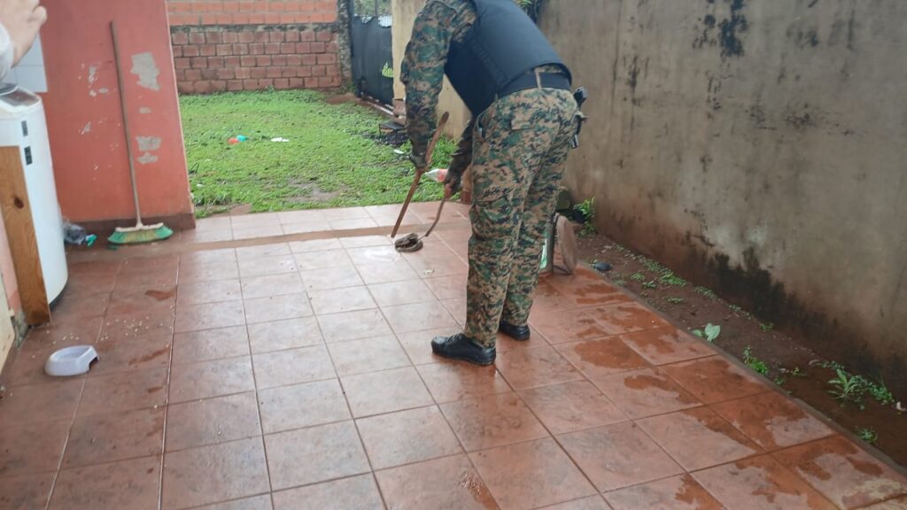 Tras el arribo de personal policial de la Dirección Defensa del Medio Ambiente y Delitos Rurales, se constató efectivamente la presencia de una yarará, la cual bajo las reglas de bioseguridad, fue resguardada y retirada del domicilio, sin registros de incidentes.