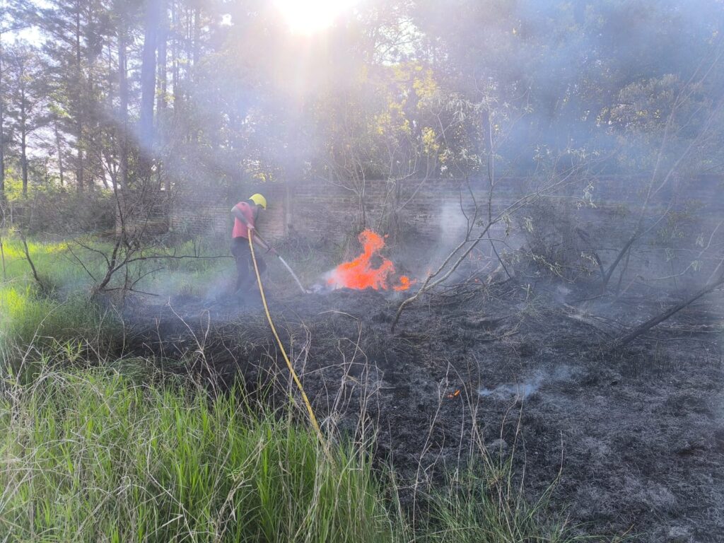 Efectivos de la División Bomberos de Santa Ana acudieron al lugar con una autobomba, logrando controlar las llamas que afectaron una superficie aproximada de 20 metros de ancho por 50 de largo.