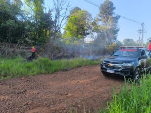 En el sitio ya se encontraba un móvil policial brindando apoyo. Tras el despliegue de una línea devanadera, el fuego fue sofocado evitando su propagación. No se registraron lesionados ni daños mayores.