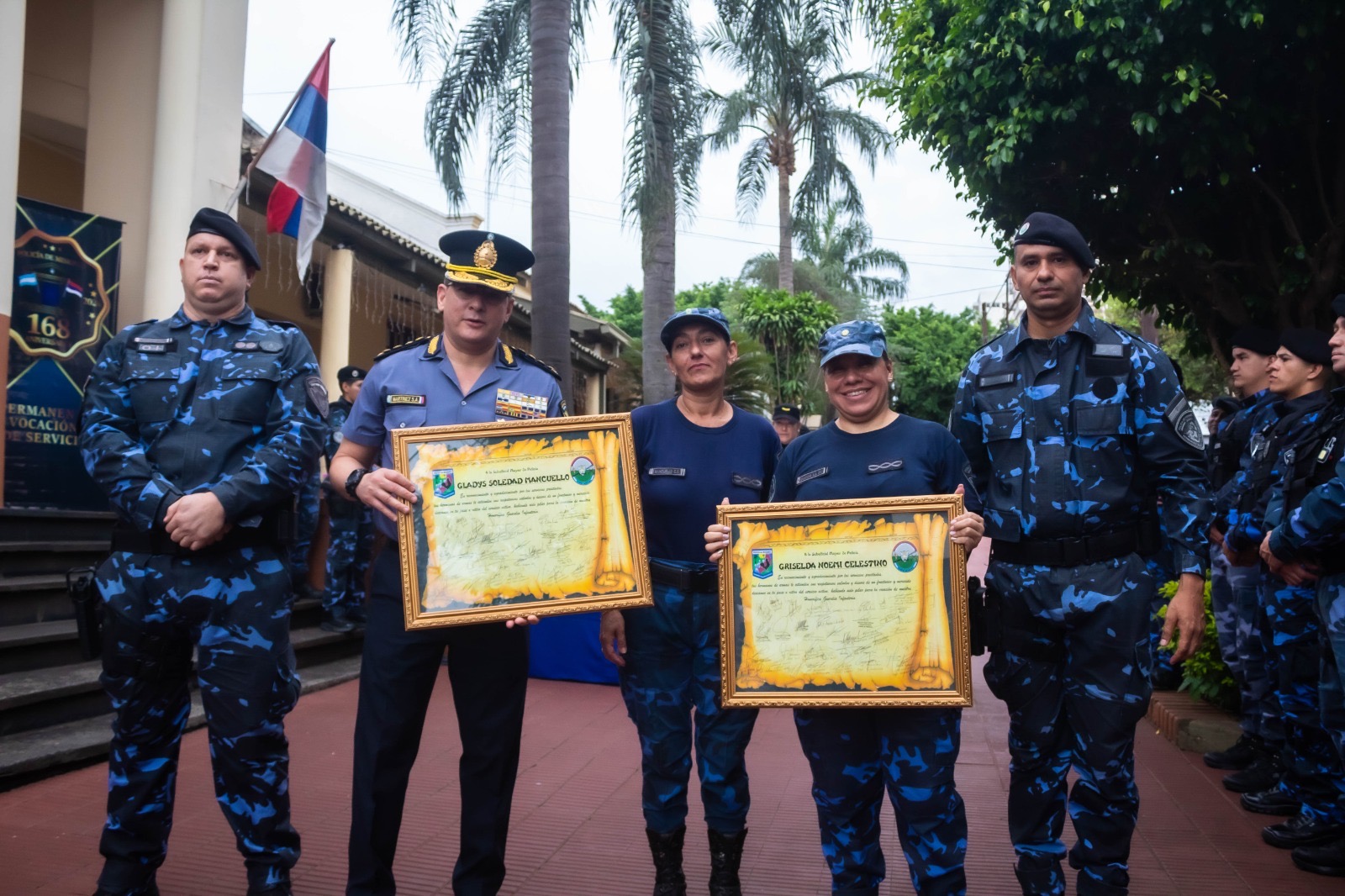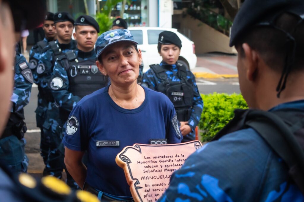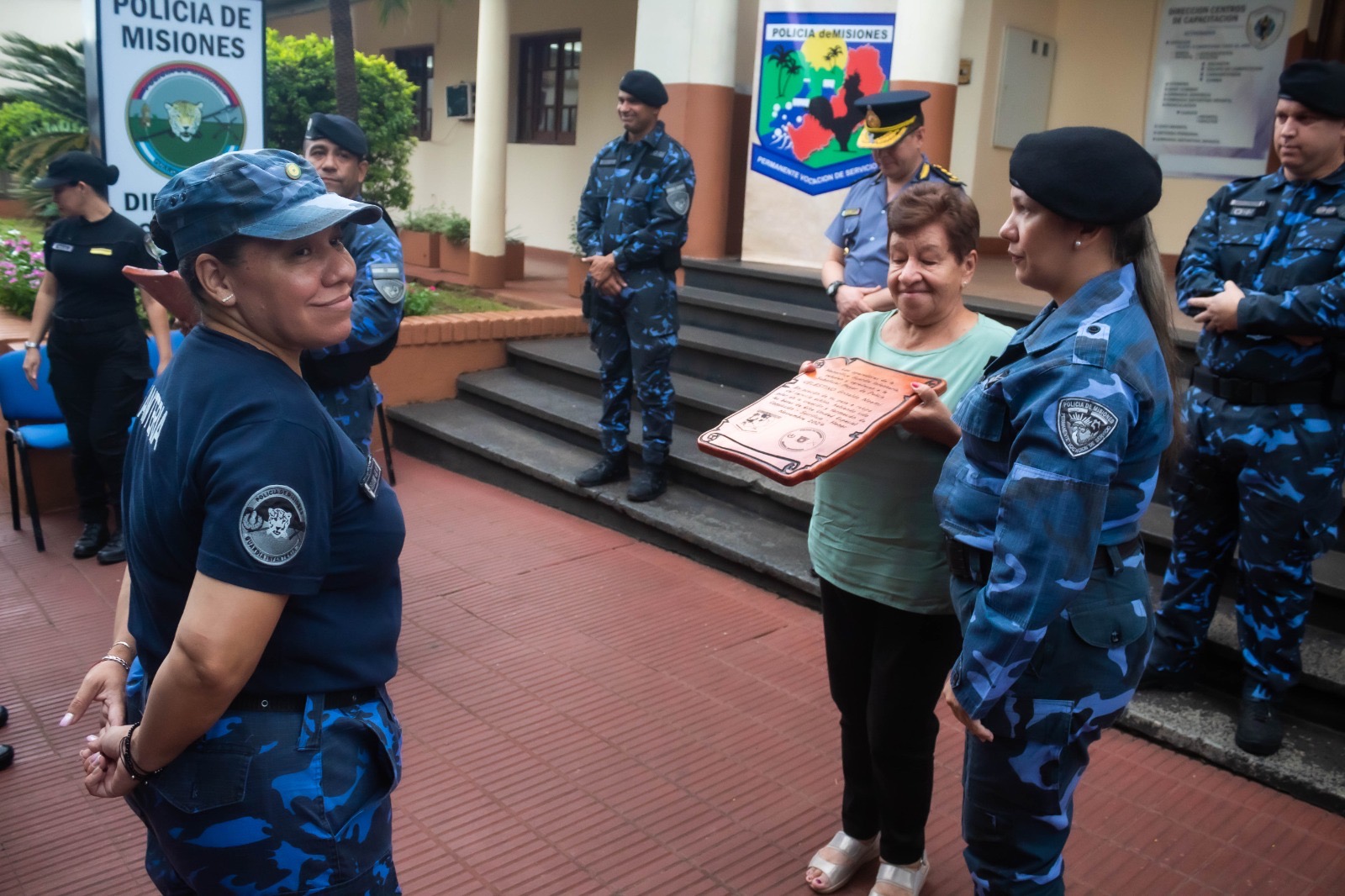 Además de resaltar el compromiso, la responsabilidad y lealtad de las dos suboficiales mayores a lo largo de su carrera, junto al Director de Infantería, Comisario Mayor Ángel Atilio Suárez, se les realizó la entrega de placas, en las cuales se destacan su trayectoria al servicio de la comunidad misionera.