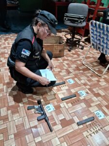 Tras las investigaciones, la fuerza provincial irrumpió ayer a la noche en dos domicilios ubicados en el Km 1 de Eldorado. En el primer inmueble secuestraron un arma de fuego tipo tumbera, tres cargadores, municiones de 9mm, dos teléfonos celulares y un buzo negro con capucha. En el segundo domicilio, se hallaron dos escopetas y más municiones de 9mm.