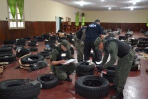 Personal perteneciente al ESCUADRON 57 “SANTO TOMÉ” dieron cumplimiento a la Manda Judicial que ordenaba la apertura de 169 encomiendas, dentro de las cuales se encontraban acondicionados 272 neumáticos de distintas medidas y rodados de origen extranjero y que carecían del aval aduanero correspondiente.