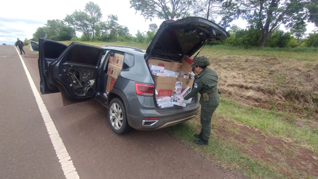 Inmediatamente se alertó a las patrullas cercanas y se iniciaron tareas de rastrillaje, las cuales permitieron hallar al vehículo evadido a pocos kilómetros de distancia, sin ocupantes y con gran cantidad de cajas de cartón en su interior, las cuales contenían un total de 15.000 paquetes de cigarrillos de origen extranjero que carecían del aval aduanero correspondiente. El rodado poseía chapas patentes que pertenecían a otro vehículo, así como otros dos pares distintos en el habitáculo.