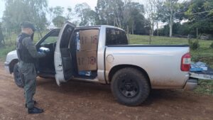 Asimismo, efectivos de la SECCIÓN “NÚCLEO”, observaron que una camioneta evadía el dispositivo de control ubicado sobre la Ruta Nacional Nº 14, en el ingreso a la ciudad de Bernardo de Irigoyen. Luego que un móvil de la Fuerza se desplazara hacia el lugar fue posible hallar el vehículo abandonado, en cuyo interior se contabilizaron 15.500 paquetes de cigarrillos que carecían del aval aduanero correspondiente.
