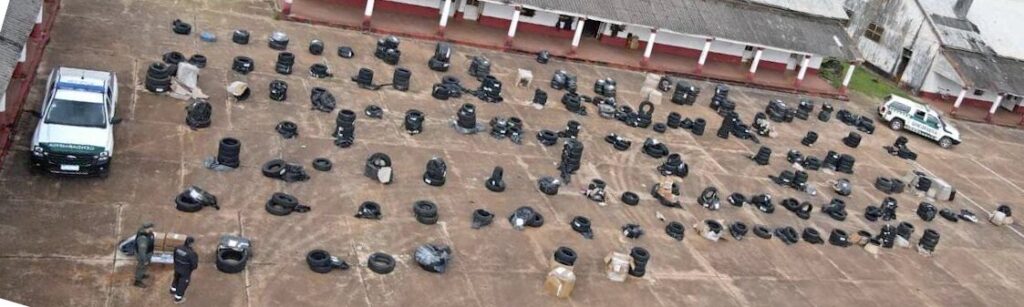Dentro de las mismas los uniformados constataron la presencia de 36.000 paquetes de cigarrillos, 489 neumáticos de distintas medidas, así como 44 paquetes plásticos amorfos que contenían una sustancia vegetal, cuyas muestras fueron sometidas a pruebas químicas de campo que arrojaron resultados positivos para “Cannabis Sativa” con un peso de 48,044 kg.