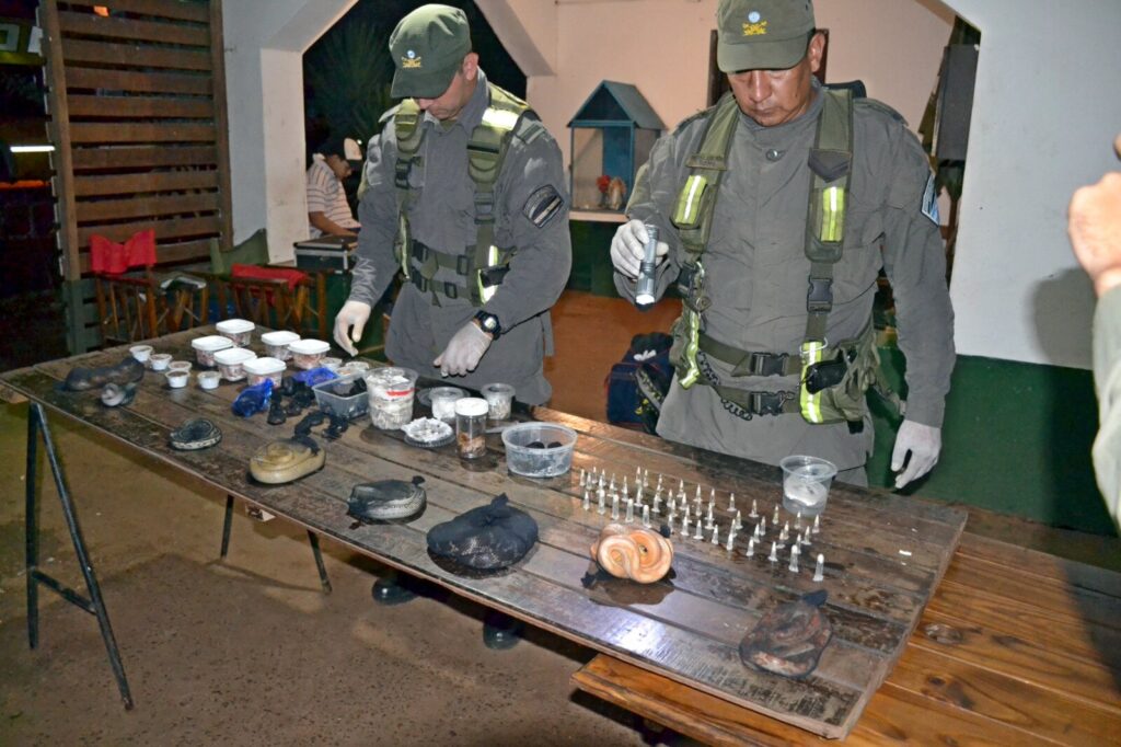 El vehículo, con itinerario era Bernardo de Irigoyen (Misiones) – San Justo (Buenos Aires), fue sometido a control físico y documentológico por parte de los uniformados. Al requisar la bodega se constató la presencia de dos bolsos de mano, en cuyo interior se encontraban numerosos recipientes plásticos, cápsulas y bolsas de red que contenían animales. Luego de identificar al propietario del equipaje, y ante la presencia de testigos, se confirmó la presencia de 90 serpientes de distintas especies, 236 ejemplares de arácnidos y 1 ciempiés.