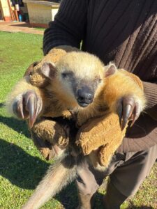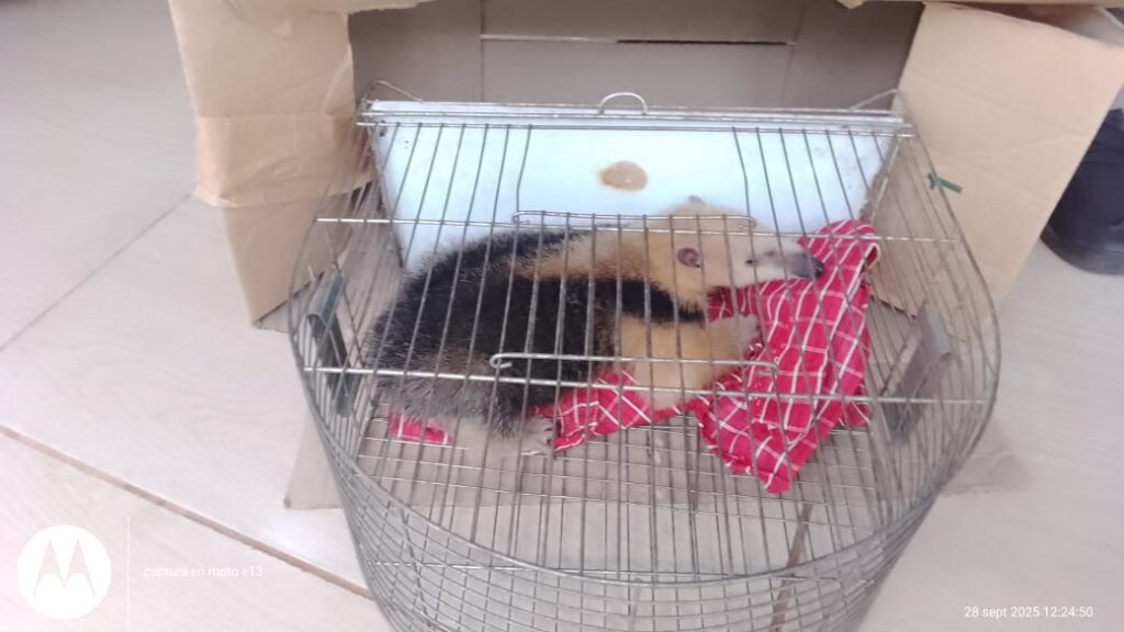 Ante tal situación, la patrulla que se trasladó hasta el lugar indicado, constatando que el animal se trataba de un oso melero, nombre por el que usualmente es conocido, el cual había sido puesto a resguardo dentro de una jaula por el dueño del inmueble. Es así que los gendarmes, bajo la premisa de salvaguardar la integridad del espécimen, dieron intervención al Centro de Conservación de Fauna “Ohana” y Guardafaunas del Ministerio de Ecología de Misiones, entidad que activó el protocolo de conservación y traslado del ejemplar de “Tamandua Tetradactyla”.
