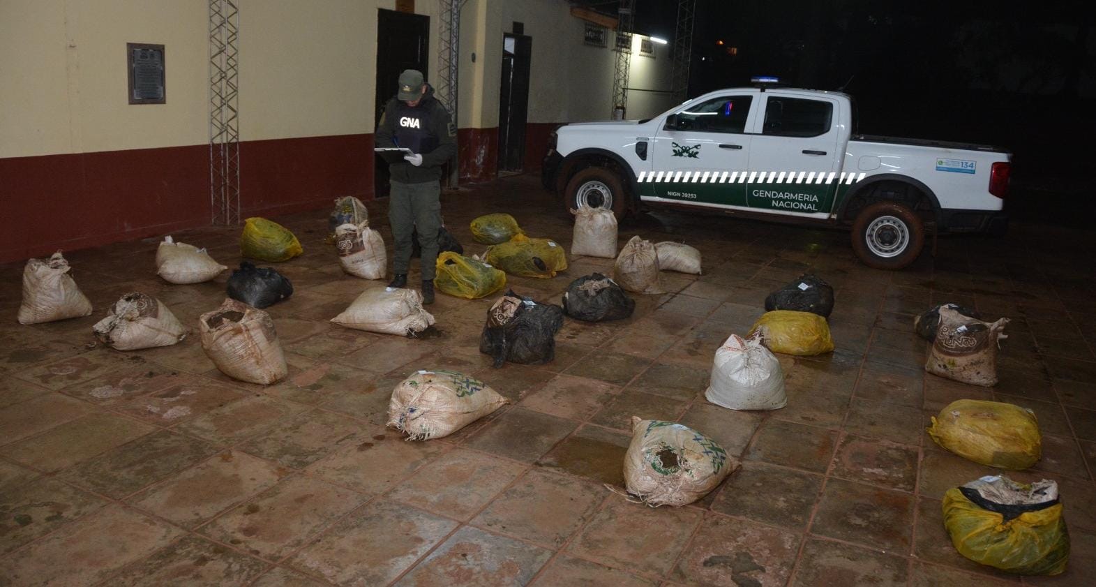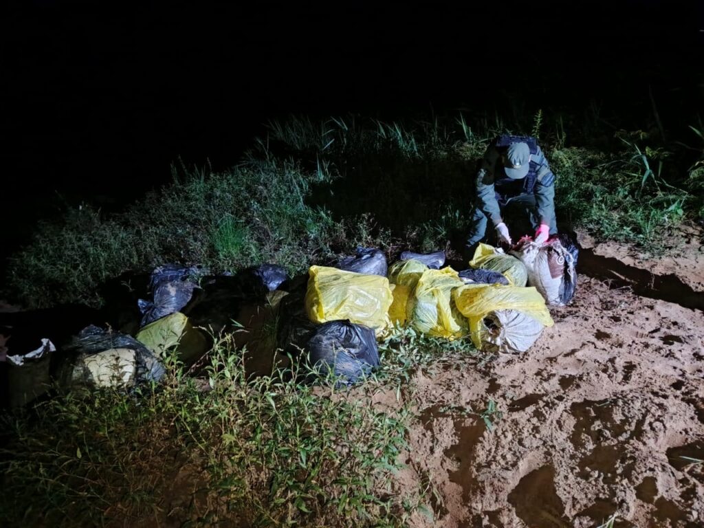 Los bultos que contenían el estupefaciente se encontraban acopiados en cercanías al límite internacional fronterizo.
