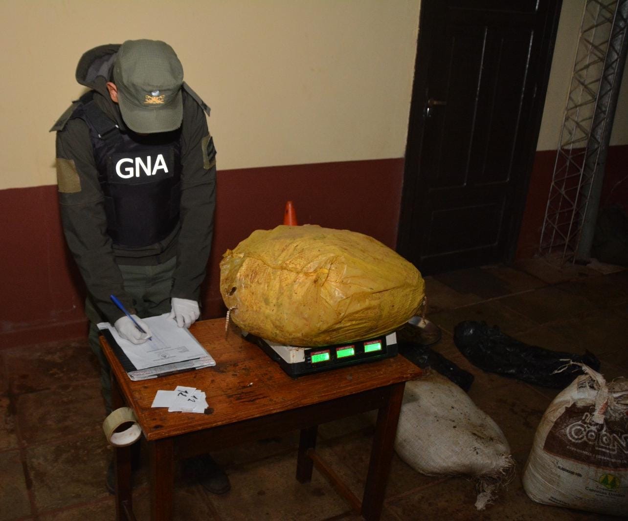 Una patrulla conformada por personal perteneciente a la SECCIÓN “ESPERANZA”, dependiente del ESCUADRÓN 10 “ELDORADO”, quienes se encontraban recorriendo en forma pedestre senderos pertenecientes a la zona conocida como “cinco arroyos”, los cuales conducían a la zona de ribera del río Paraná, lugar donde hallaron acopiados bultos de grandes dimensiones que emanaban un fuerte olor similar al de la marihuana.