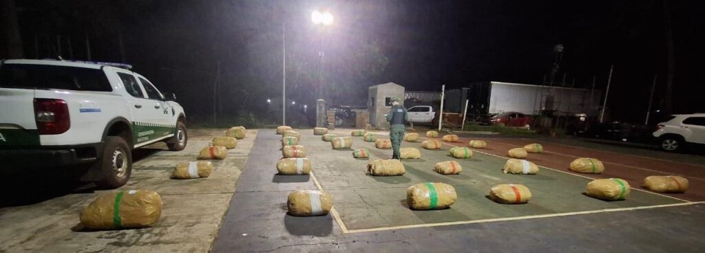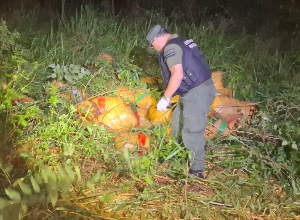 Los gendarmes hallaron huellas que conducían al acopio de 37 bultos entre la vegetación.