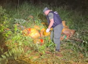 En una zona de maleza, a la vera de un camino terrado que conducía hacia las orillas del río Paraná, los funcionarios hallaron un total de 37 bultos de grandes dimensiones que desprendían un fuerte olor similar al de la marihuana, los cuales acondicionaban cogollos vegetales. Personal de Criminalística y estudios Forenses, quienes se hicieron presentes en el lugar, llevaron a cabo pruebas químicas de campo sobre las muestras que arrojaron resultados cromáticamente positivos para “Cannabis Sativa”, con un peso de 1.221,600 kg.