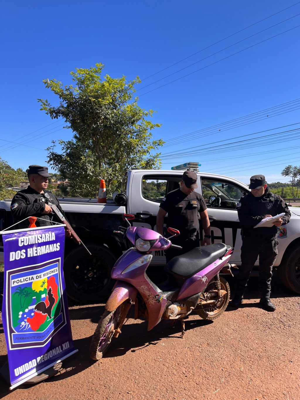 El hecho tuvo lugar en jurisdicción de la Unidad Regional XII, en el marco de operativos preventivos llevados adelante por la Comisaría de Dos Hermanas. En esas circunstancias, los efectivos identificaron una motocicleta marca Honda Biz 125 que circulaba realizando maniobras imprudentes en la vía pública.