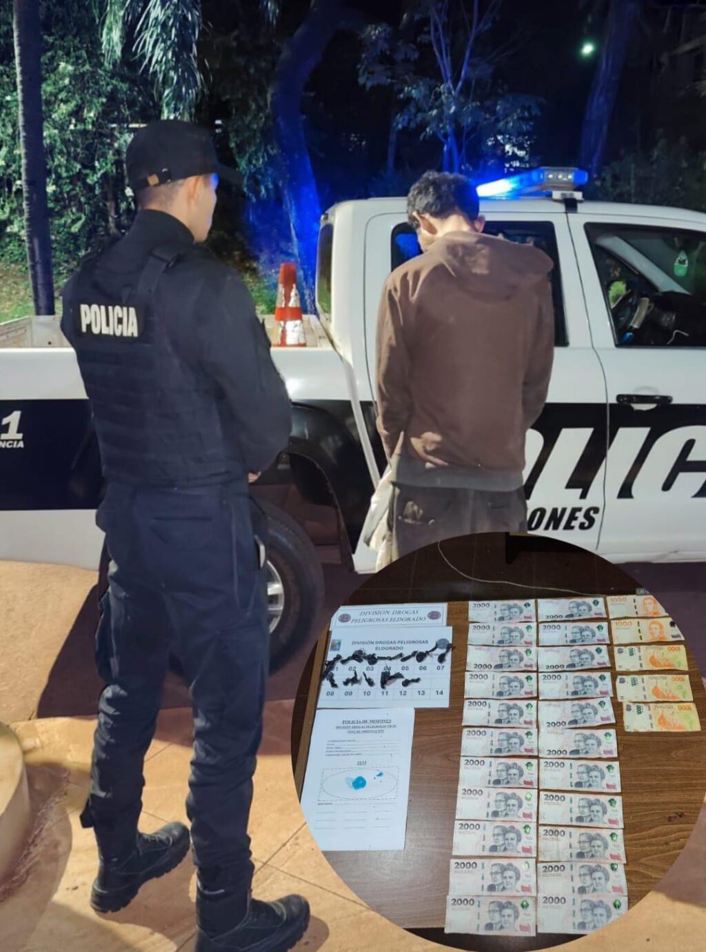 El procedimiento se concretó en Eldorado durante un operativo encubierto de drogas peligrosas. El dealer llevaba envoltorios con clorhidrato de cocaína listos para su comercialización.